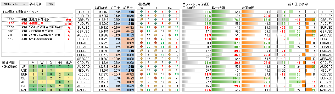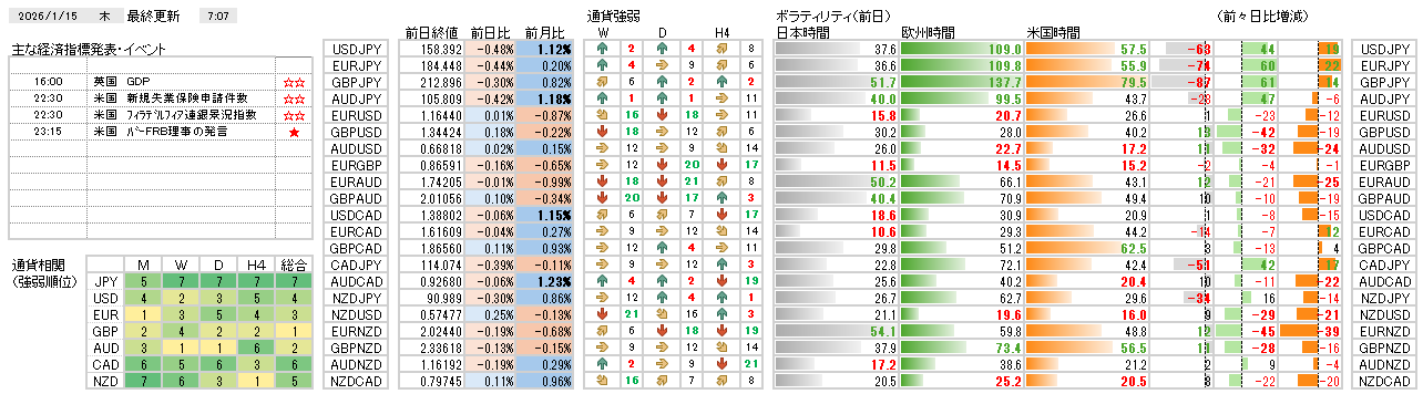 今日の環境分析 2026年1月15日(木)円反転の動きに注目!