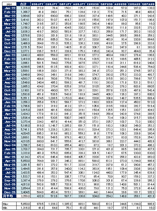 2022年からの各通貨ペア毎の成績をまとめています。