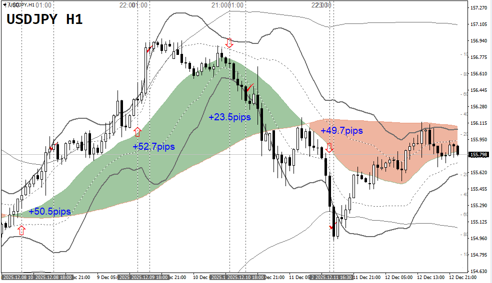 10月第3週は、9通貨ペアで+699.0pipsとなりました。週を通じて14回トレードし、10勝4敗、勝率71.4%となりました。今週は、エントリーポイントを厳選したことで、勝率は回復しました。しかし、ボラティリティの高い展開の中、レンジ上限・下限付近でエントリーしたポジションが、すぐに損切りになるケースがありました。さらにエントリーポイントを厳選していきたいと思います。