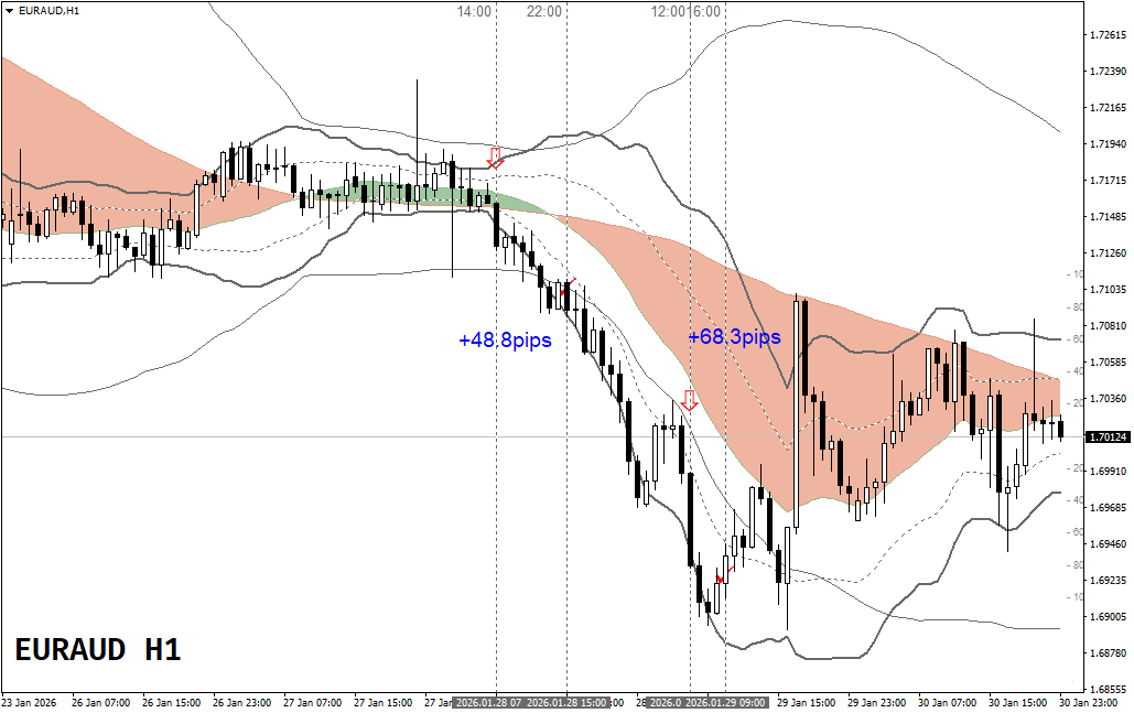 GBPAUD(96.8pips)>EURAUD(53.5pips)>AUDJPY(31.5pips)
