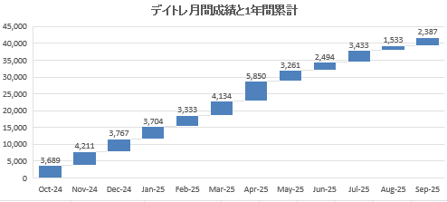 月次報告 2025年9月の実績 +2,387.4pips 9月のデイトレード結果9月のトレード結果は+2,387.4pipsと、8月に次ぐ今年2番目の低水準となりました。方向感のつかみにくい展開が続き、大きなトレンドの発生もなく、小幅の収益を繰り返す状況にな... 2025.10.01 月次報告