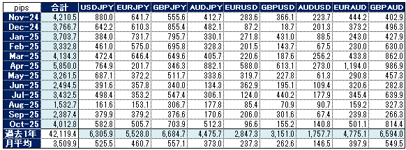- GBP関連通貨:GBPAUD・GBPJPYが月間の収益上位の1・2番目となりました。