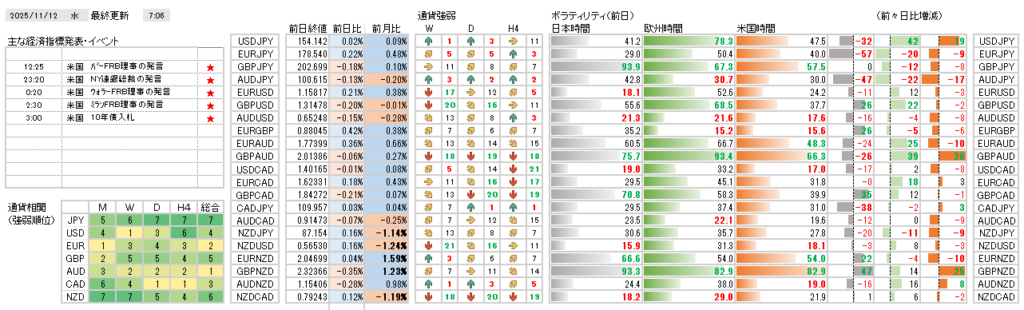 2025年11月12日(水)FRB高官発言に注意!