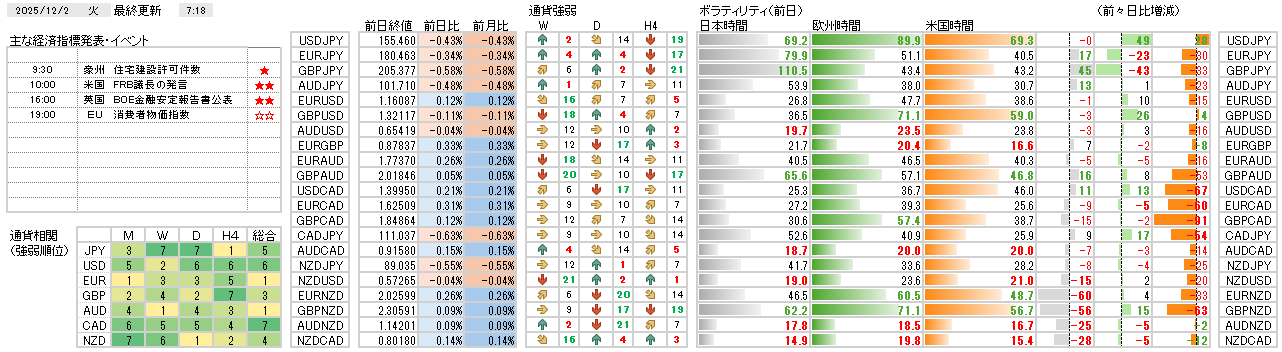 今日の環境分析 2025年12月2日(火)日米金融政策への思惑強まる? 昨日、日本では日銀総裁の利上げに関する発言を受け、ドル円は一時的に円高に大きく振れ、円の相対的な強さが際立っています。対照的に米国では、ISM製造業景気指数が景気判断の節目を下回ったことから米国の利下... 2025.12.02 今日の環境分析