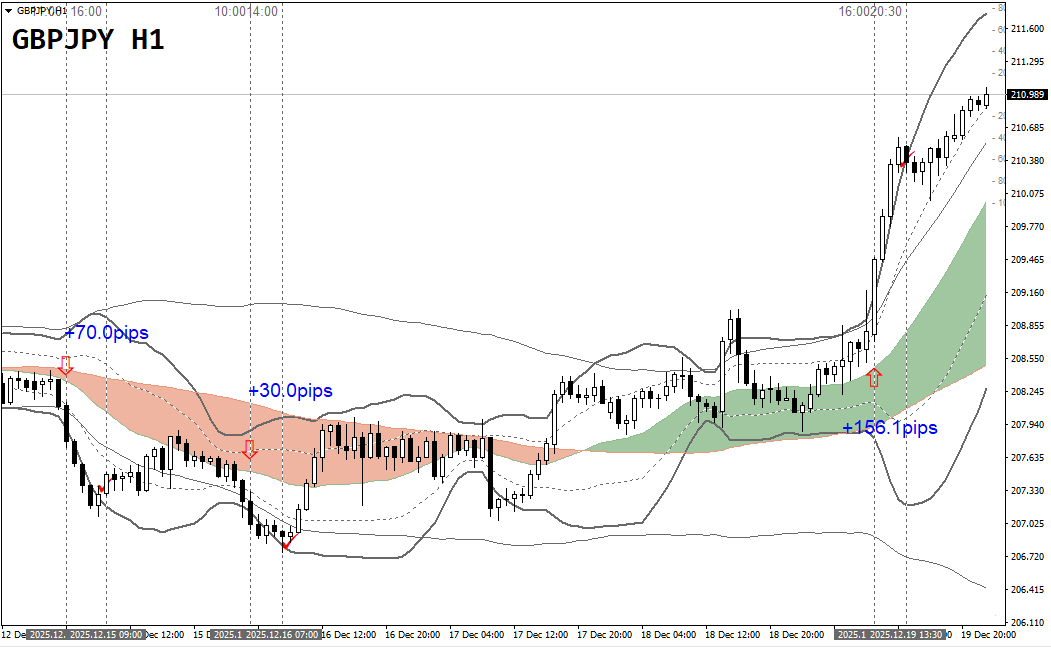 週次報告 2025年12月第3週(12/15-19)+963.1pips 今週は、トレードチャンスはあるものの、大きくとれる展開にならずにいました。木曜日はトレードがなく、比較的トレンドを確認しやすかったAUD関連通貨でもチャンスを見出すことができませんでした。金曜日に日銀... 2025.12.20 週次報告