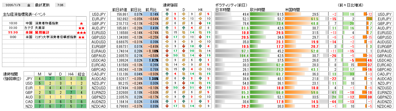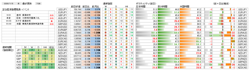 2026年1月8日(木)明日の米雇用統計を前に様子見?