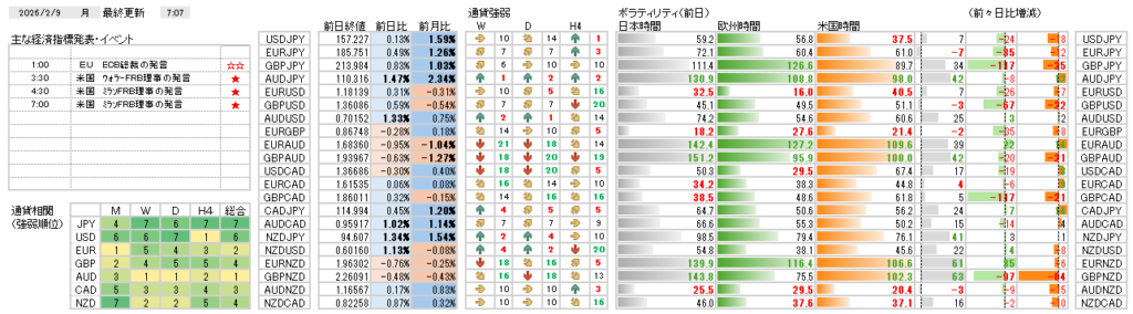 週明けのオセアニア市場では、選挙結果を受けてドル円が強く始まったものの、介入への警戒感からさらなる円安の進行には限界があると考えています。通貨相関からは、豪ドルの強さとポンドの弱さに注目しています。また、今週は米国の重要指標も控えているため、市場のボラティリティの高まりに注意が必要となります。本日は、政治情勢が経済に与える影響を注視しつつ、慎重にトレンドの確定を待ちたいと思います。