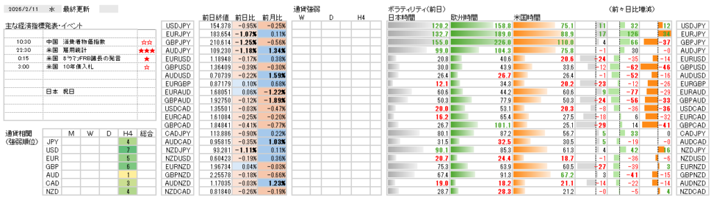 2026年2月11日(水)米雇用統計に警戒! 今日の環境分析 2026.02.112026.02.12 米国雇用統計1月失業率:4.3%(予想4.4%、12月4.4%) 非農業部門雇用者数前月比:13.0万人(予想7.0万人、12月5.0万人)