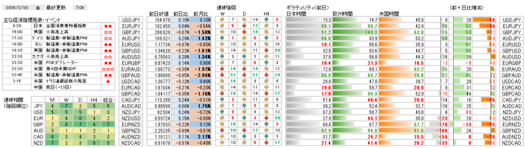 米国の良好な雇用指標を受けて米ドルの強気姿勢が継続していますが、市場全体では価格の方向性を探る迷いも見られます。本日は日本の消費者物価指数や欧米のPMIなど、市場への影響力が大きい指標の発表が重なるため、各通貨の変動に警戒が必要です。特に円やユーロ、ポンドの動きを注視しつつ、ドルの買いを軸とした通貨選択を検討したいと思います。また、日本の三連休を控えた投機的な動きやイラン情勢などの外部要因が、不透明な相場に与える影響にも注意したいと思います。