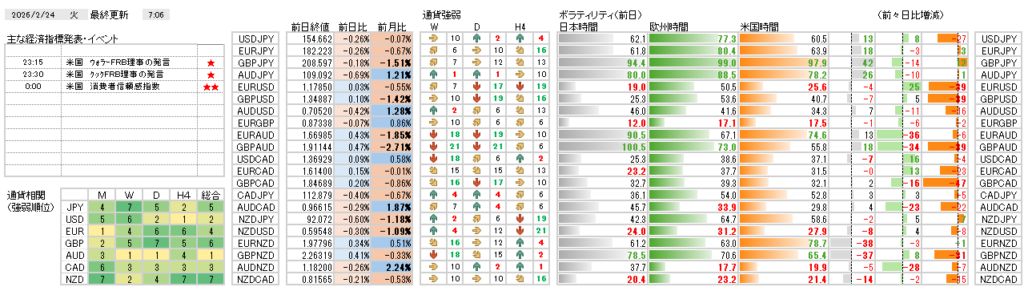 米国のトランプ関税や中東情勢への懸念から不透明感が漂い、ドル円を含めた主要通貨が狭いレンジでの推移に留まっています。多くの通貨ペアにおいてボラティリティが低下するスクイーズ状態にあり、特にポンドに関連するグループの均衡が破れるタイミングに注目しています。本日は日本や中国の連休明けが重なるため、実需の動きが停滞した市場を刺激する可能性に注意したいと思います。また、米国の消費者信頼感指数やFRB金融当局者の発言が控えており、これらが次なる政策への思惑を呼び、ドルの方向性を示唆するのではないかと思います。市場全体が材料待ちの姿勢を強める中、欧州時間以降の流動性の高まりが今後の展開を左右する鍵と考えます。