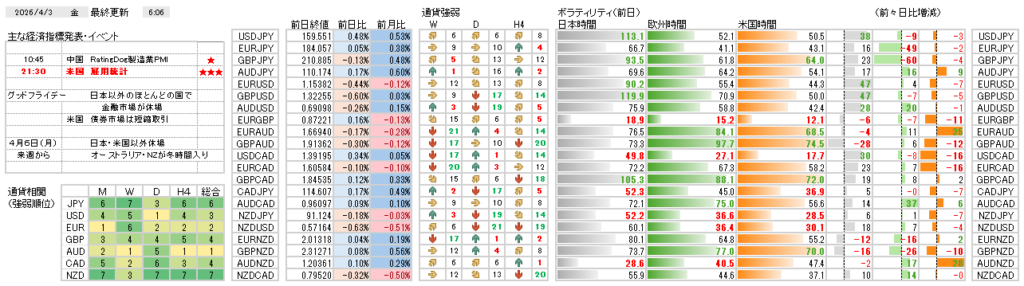 昨日のトランプ大統領の会見が期待外れに終わったことで中東情勢の先行きが不透明となり、市場には方向感の乏しい展開が続いています。特にイースター休暇の影響で多くの主要国が休場となるため、極端な流動性の低下に注意を払う必要があります。米国の雇用統計発表時には値動きが大きくなる可能性も予想されますが、市場参加者が限られているため静観することが望ましいと思います。来週月曜日も引き続き多くの国が祝日となるため、無理な取引を避けリスク管理を優先し、様子見したいと考えます。