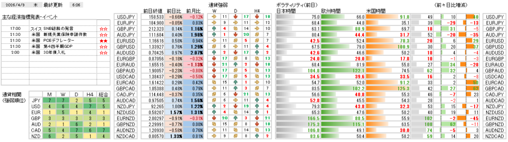 イランを巡る地政学的リスクの緩和を受け、市場では急速なドル安とリスクオンの動きが強まりました。通貨相関からは、USD(米ドル)が最弱通貨となりました。本日は、中東情勢の動向を注視しつつ、米国のPCEデフレーターやGDPといった重要指標による市場の反応をみたいと思います。昨日の大きな動きの後だけに、時間調整を見極めてからドルの戻り売りや豪ドルの押し目買いを狙いたいと思います。