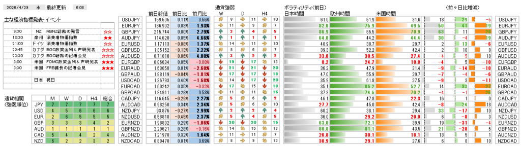 昨日は、日銀の政策金利据え置きや物価見通しの修正でが円高に向かいましたが、その後に反転し、ドル円は一定の範囲内で推移しています。現在は主要通貨に明確な方向感がないため、オーストラリアの物価指数や北米の金融政策発表といった重要指標を待つべきと思います。中東情勢などの市場の急変に備えつつ慎重に取引機会を待ちたいと思います。