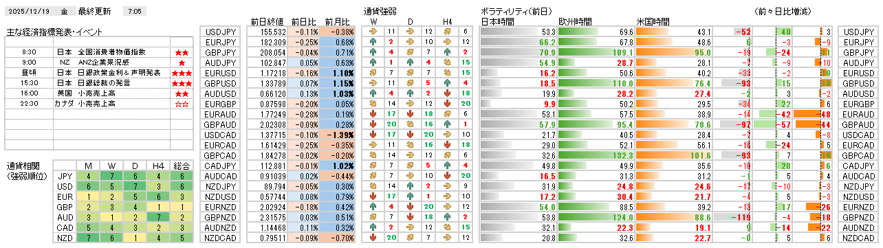 昨日は、英国CPI発表を受けGBPが変動し、AUDJPYを除くクロス円通貨が反発しました。通貨相関からは、JPYの強さとUSDの顕著な強さ、AUDの継続的な弱さが確認できます。 本日は、英国BOEとユーロECBの金融政策に注目しています。さらに、米国CPIにも注目しています。FRBの次の金融政策に与える影響について注意してみておきたいと思います。